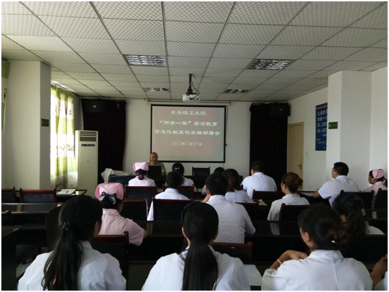 四川新闻网眉山7月27日讯(杨敏 文/图)为推动“两学一做”学习教育常态化制度化。7月27日下午2时,洪雅县东岳镇卫生院党支部召开“两学一做”学习教育常态化制度化安排部署会,卫生院在岗职工28人参加。