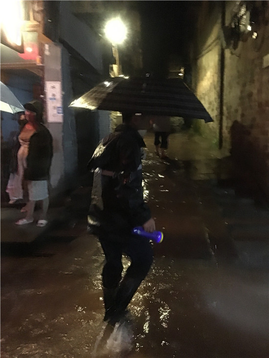 大雨倾盆,连续不断无变小趋势,镇领导高度重视立即召开党委会部署安排,严格值守,再次通知到各村(社)注意实时监控上报雨情,监测点观测员到岗到位,应急抢险队到岗到位。获悉此情况洪雅县县委常委、县政府常务副县长韩杰马上带领相关人员赶赴现场。眼见洪水来势凶猛,水漫上柳江镇古镇老街,淹没部分道路,情况紧急,景、镇领导干部迅速发动,转移、疏散群众游客,确保群众和广大游客安全。