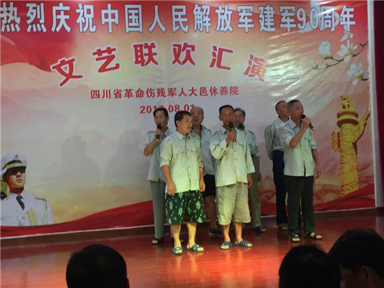 四川新闻网眉山8月9日讯(张华 文/图)铭记党的光辉历史,弘扬八一精神,丰富优抚对象精神文化生活。 7月25日,洪雅县民政局派专人组织重点优抚对象14人到成都市大邑县苏家镇革命伤残军人休养院参加疗养活动。