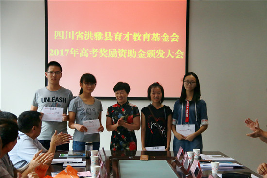 大会对2017年高考中取得优秀成绩的洪雅中学白一媚、郭梅梅、刘路遥等23名同学以及眉山电子职业技术学校宋宇、殷雨翔、王洪兵等3名同学进行了表彰;另对家庭经济困难的10名大一新生进行了资助。尹鸿、姜定波、冯学东等向同学们颁发了奖金和资助金。