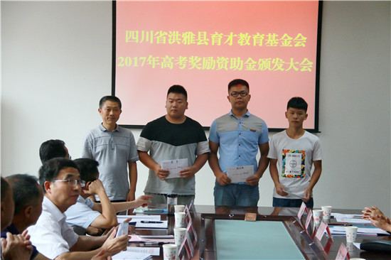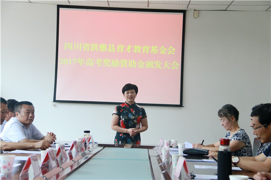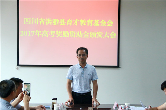 四川新闻网眉山8月21日讯(邱宗华 杨建波 文/图)为助力洪雅教育可持续发展,促进培养更多优秀人才,8月18日,洪雅县育才教育基金会2017年度高考奖励资助金颁发大会在洪雅中学隆重召开,对洪雅县2017年高考优秀学生进行奖励,对家庭经济困难大学新生进行资助。眉山市文化广电新闻出版局副局长尹鸿、洪雅县副县长姜定波、洪雅县教育体育局局长冯学东等领导出席,县基金会副理事长黎明主持了大会。