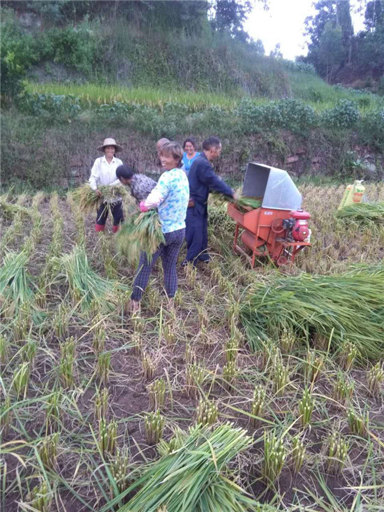 “走,我们都去帮周大姐看看!”在了解到周桂容的情况后,党员代表王宇全、李国强等义无反顾,自发组织了11名党员群众,果断来了一场说帮就帮的“水稻抢收行动”。大家戴着草帽,带上了自家打谷机、镰刀等工具,一路浩浩荡荡的赶往周桂容家田里,帮着收割水稻。