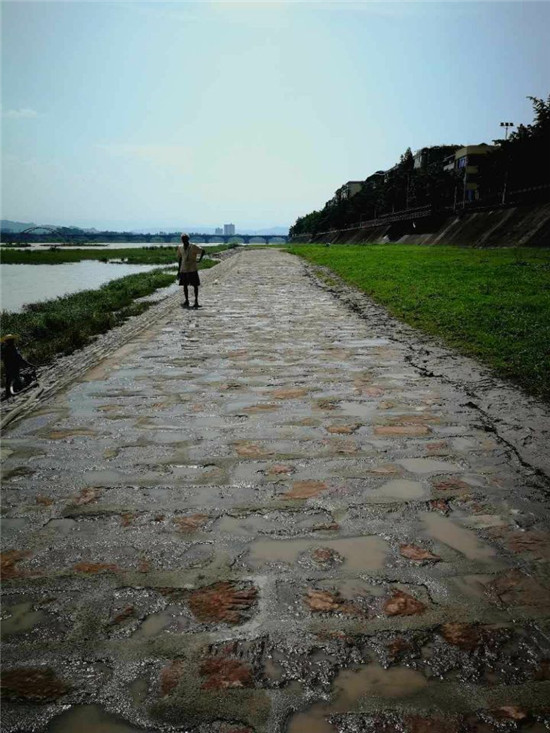 四川新闻网眉山8月15日讯(付红霞 文/图)日前,眉山市洪雅县普降大雨,青衣江水位上涨,将雅女浴场道路淹没。水退后,雅女浴场道路泥沙淤积,影响市民休闲纳凉。