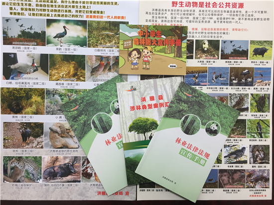 四川新闻网眉山8月18日讯(黎俊 文/图)为进一步推进生态文明建设,洪雅县林业局深入贯彻《中华人民共和国森林法》、《中华人民共和国野生动物保护法》等林业法律法规,依法保护森林资源,保障生态建设。一是投入4万多元印制《林业法律法规宣传手册》、《洪雅县涉林典型案例汇编》以及林木采伐、森林防火等宣传资料2万余本。二是将宣传资料分发到乡镇、村组、重点林区群众等,着力提高基层干部、广大群众和涉林从业人员法律意识,进一步强化生态环境保护,加快生态文明建设步伐。三是加大对破坏森林资源违法犯罪行为的打击力度,有效提高执行力。
