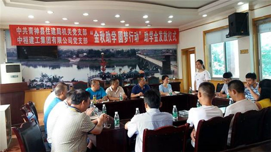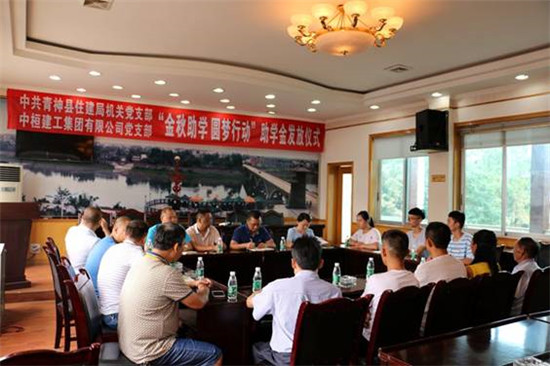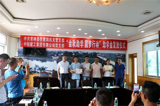 四川新闻网眉山8月22日讯(葛月丽 覃超 文/图)八月稻花香,金秋结硕果。8月18日,青神县住建局结合“两学一做”教育实践活动,由局机关党支部联合中桓建工集团党支部,举行“金秋助学圆梦行动”助学金发放仪式。