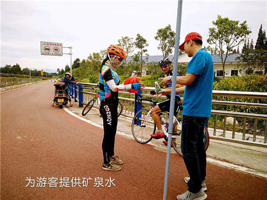 四川新闻网眉山9月4日讯(吴良川 文/图)9月2日,洪雅县安监局党员先锋服务队在局长伍秋军带领下到西环线展望村服务点开展旅游志愿服务,接待游客30多人次,其中指引道路10余次,接受其他各种咨询20余人次,免费发放矿泉水20余瓶,发放旅游宣传资料30多份。