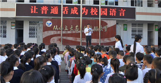 四川新闻网眉山9月12日讯(高显俊 肖萌 罗梓艺 文/图)9月11日至17日是第20届全国“推普周”,9月11日,青神县学道街小学隆重举行了“让普通话成为校园语言”主题朝会。