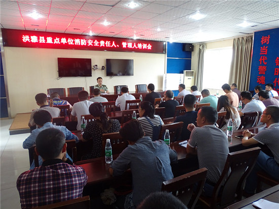 四川新闻网眉山9月24日讯(孙阳容 文/图)为全面做好消防安全工作,坚决确保全县消防安全形势稳定,严防重特大火灾事故发生。9月20日下午,洪雅县消防大队组织召开了重点单位负责人、管理人消防安全培训会。全县消防安全重点单位负责人、管理人参加了会议。