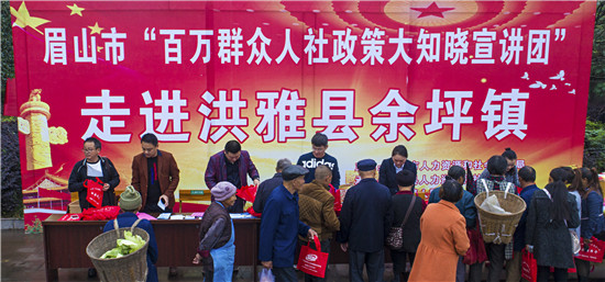 四川新闻网眉山10月12日讯(陈秋红)为普及宣传人社政策,扩大政策知晓面,继11日在洪雅县人社局开展讲座后,12日眉山市“百万群众人社政策大知晓”宣讲团和洪雅县人社局干部一同送政策下基层走进洪雅县余坪镇。
