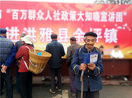 眉山市宣讲团现场发放了社会保险、劳动维权、大学生就业创业等相关政策宣传资料,并为余坪镇群众解答了养老保险参保问题、医疗保险待遇报销问题、社会保障卡使用问题、劳动维权问题等,向群众推广12333咨询热线。