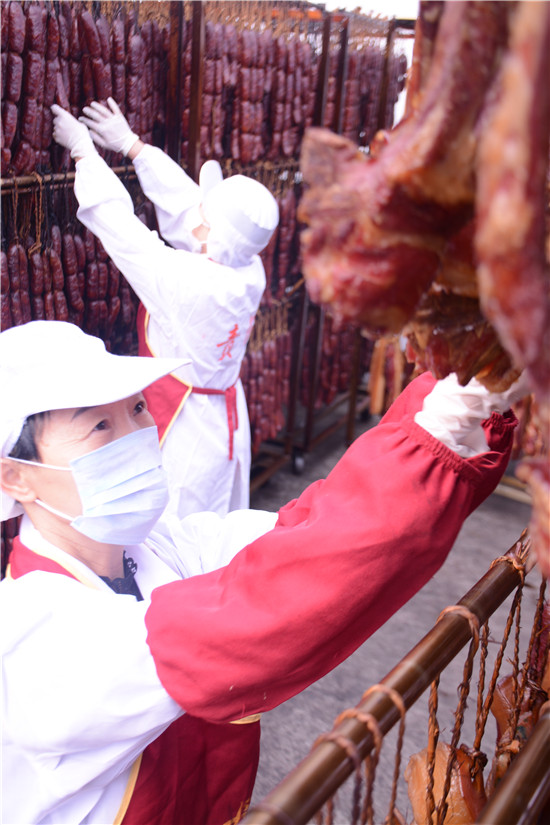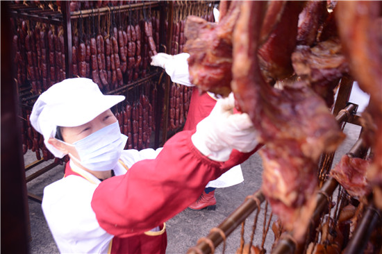 “老丈母 ”腊肉正在为双“十一”定单赶货