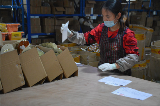“杨大爷”电子商务有限公司的员工正在为“双十一”定单分货