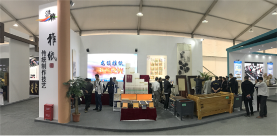 洪雅展馆分为传统雅纸制作工艺区域和雅纸书画展示区。现场摆放了龙须雅纸的制作原料,由雅纸制作工匠现场展示雅纸的抄造、掀纸、晾晒、整理等精湛技艺。书画名家以雅纸为料,现场展示书画技艺,充分展示龙须雅纸宜书宜画等特点。
