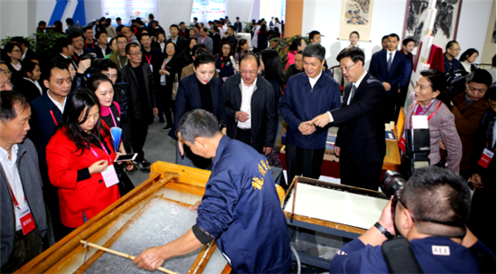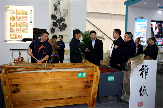 省政府副省长叶壮、省政府副秘书长严卫东、省人社厅厅长戴允康、副厅长田杰、眉山市市长罗佳明等省、市领导在洪雅县委副书记、县长宋良勇的陪同下莅临洪雅展馆,现场参观了雅纸制作工艺。