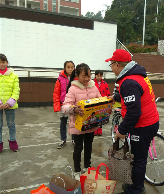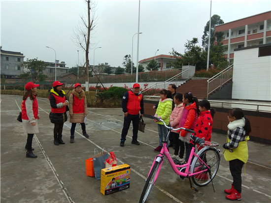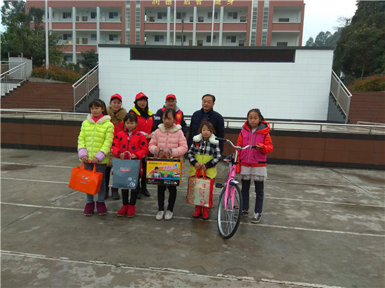 本次来该校送温暖的企业是眉山鑫欣园林有限公司,他们带来了孩子们的心愿,带来了新年礼物,也带来了社会各界人士对贫困孩子的关心和问候。五个孩子脸上带着幸福的微笑,站在旗台前,志愿者一一给他们送上新年礼物:自行车、溜冰鞋、课外书、羽绒服、运动鞋。在接过这份“爱意浓浓”的新年礼物的那一刻,孩子们无比幸福,无比激动,纷纷表示以后一定要好好学习,天天向上,用优异的成绩来回报鑫欣园林有限公司对他们的关爱。