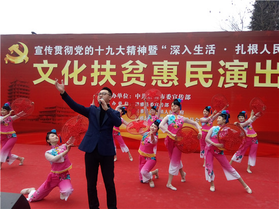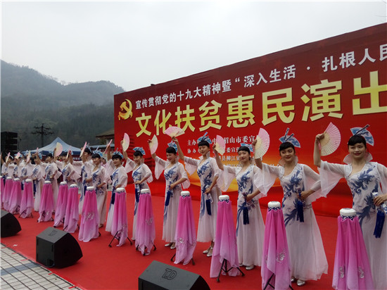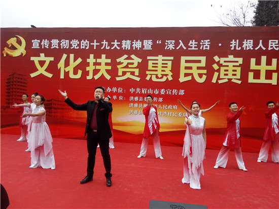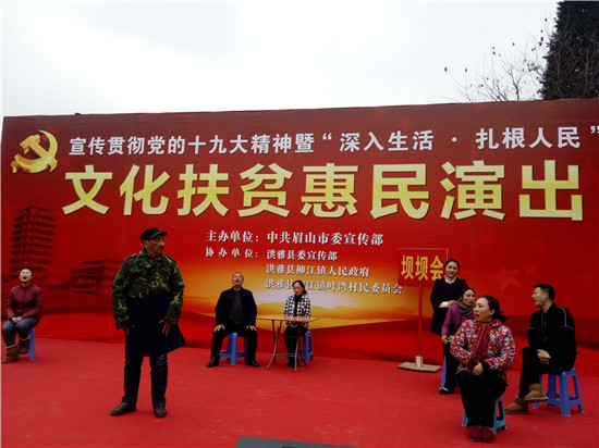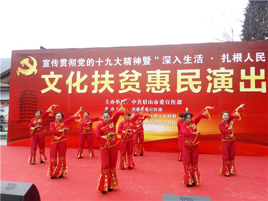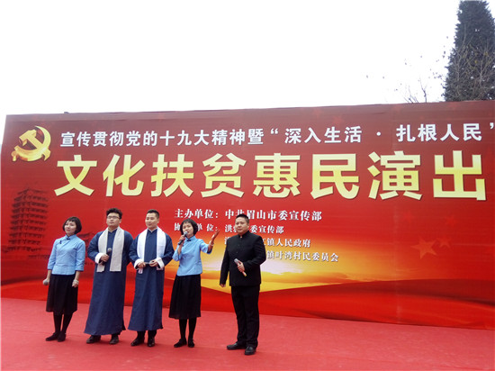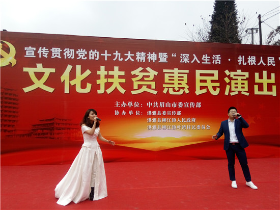 四川新闻网眉山1月17日讯(吕伟利 摄影报道)今(17)日,由中共眉山市委宣传部举办的宣传贯彻党的十九大精神暨“深入生活•扎根人民”文化惠民演出活动走进洪雅县柳江镇叶湾村。