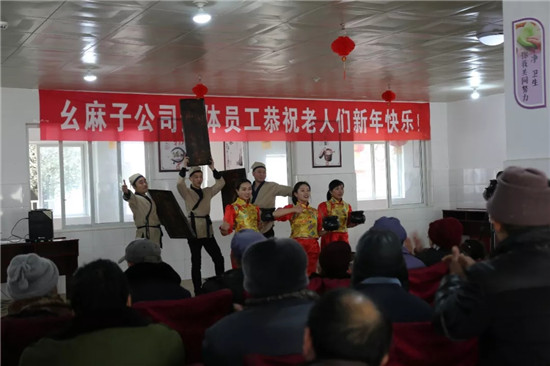 幺麻子慰问团为老人们表演精彩节目