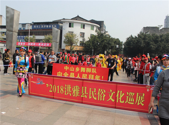 “此次民俗文化巡游活动集中展示了龙灯、狮灯、牛儿灯、等一系列洪雅非遗文化,丰富了群众的精神文化生活。”据活动组织方洪雅县文化广电新闻出版局负责人介绍,近年来,洪雅县委、县政府积极响应中央厉行节约的新风,大力倡导勤政实干之风,全县6000余名县、乡、村组干部下沉到农村结对帮扶,全县脱贫攻坚工作在2017年取得明显的阶段性成效。如今,生活日渐富足群众,自发组织起舞狮队、龙灯队、牛儿灯队等文艺小分队几十个,各地刮起“文艺风”。春节前夕,洪雅县委、县政府抓住时机,向全县发出节俭过节的倡议,号召大家通过文体活动等形式,营造新春新氛围、新气象,让浓厚“亲情、友情、同事情、帮扶感恩情”在干群之间、亲朋之间传递。这些舞狮队、龙灯队、牛儿灯队等文艺小分队开始走街串巷,上门给帮扶部门、给专合组织、给亲戚朋友等表演节目,热闹之中表达着感恩之心,幸福之情。
