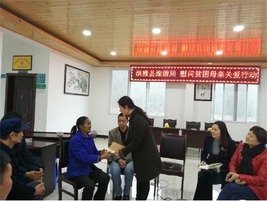 四川新闻网眉山3月10日讯(黄原 图/文)在2018年“三八”国际劳动妇女节来临之际,洪雅县旅游局开展了走访慰问贫困母亲活动,给她们送去节日的祝福。