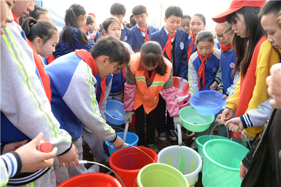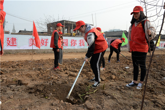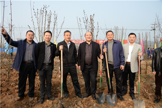 活动当天,共栽植桃树、海棠、紫薇等品种树苗1万多株。