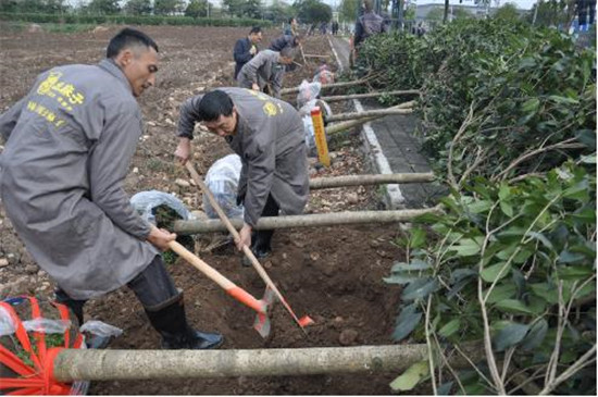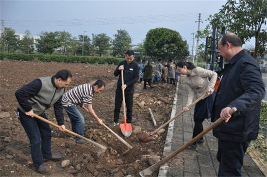 大家一到现场就忙活开了,拿起铁锹,挖坑松土、扶苗培土、踩实浇水、挂上营养液,县总工会全体干部职工与30余名企业工会会员兴致高扬,欢声笑语不断。先锋林由洪雅县总工会和幺麻子食品有限公司共同建设,共计28亩,内侧由幺麻子公司栽种藤椒,洪雅县总工会沿线种植40棵桂花树。一棵棵昂然挺立的树苗,为洪瓦路增添了勃勃生机。