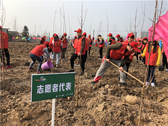 植树现场位于洪川镇雅女河北渠洪州大道至瓦屋山大道段,志愿者们在团县委副书记何慧的带领下,三五个人一组,有的清理着坑内及坑边的石砾杂物,有的担任搬运工搬运树苗,有的挥动铁锹和锄头给树苗培土,有的将树苗周围的回土踩实。挖土、扶苗、培土、浇水……每道工序都做得十分认真,分工协作,默契配合,呈现出一派热火朝天的忙碌景象。