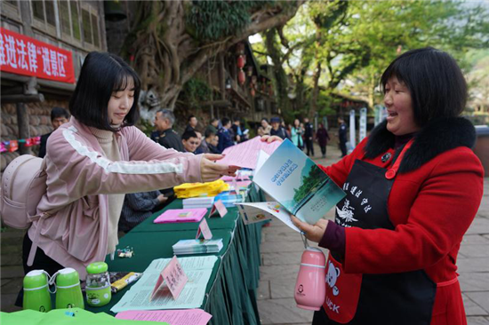 四川新闻网眉山3月23日讯(黎佳艳 文/图)为深入开展宪法宣传,夯实法治文化景区建设基本功,3月22日,县旅游局牵头组织17个县级涉旅执法部门深入柳江古镇景区开展法律法规宣传。