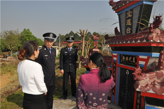 四川新闻网眉山4月3日讯(吴银萍 文/图) 今(3)日上午,青神县副县长、公安局局长王碧华、政治处主任陈洁前往青神县西龙镇为因公牺牲民警王洪强扫墓,告慰公安英烈的在天之灵。
