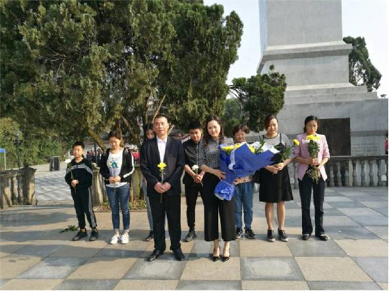 在烈士墓前,全体人员怀着崇敬和感恩的心情,肃立默哀3分钟,并敬献纯洁的黄白菊花,祭奠先烈、缅怀历史、净化心灵。