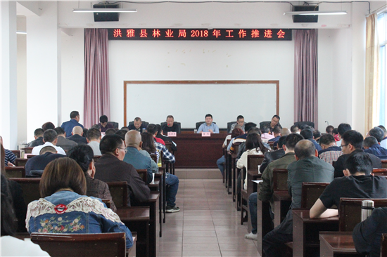 四川新闻网眉山4月16日讯(张志 文/图)近日,洪雅县林业局召开2018年工作推进会。县林业局各股室,林业站,园林所,森林公安局全体干部、职工100余人参加。