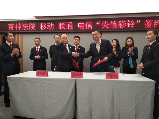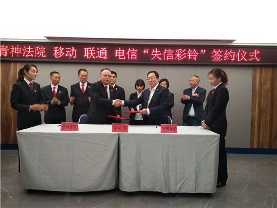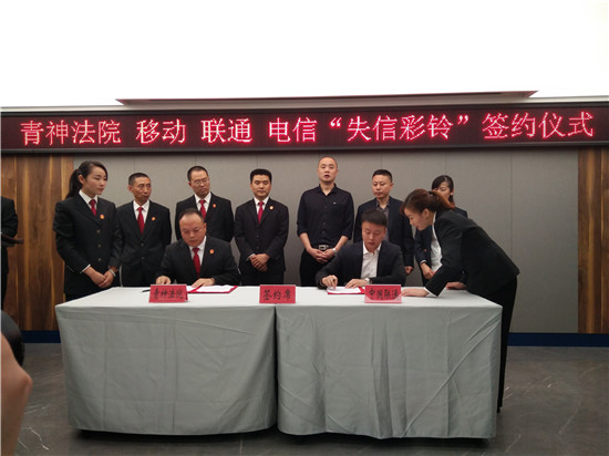 四川新闻网眉山4月18日讯(胡秉曦 廖文凯 王皓丁 文/图)今(18)日,青神县人民法院与该县移动、电信、联通三家通讯运营商分别签署《案件被执行人失信通讯惩戒协议》,通过对失信被执行人手机定制彩铃的方式施以惩戒。这是青神县法院在全市法院首推,下一步此举措将在全市法院全面实施。