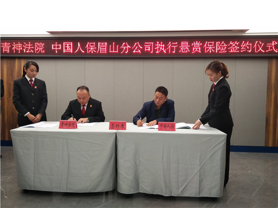 据悉,青神县第一批30名失信被执行人名单及相关法律手续已于签约当日分别送达三家通讯运营商。同时在现场,青神县法院与中国人保眉山分公司签署《执行无忧悬赏保险服务合作协议》和《战略合作框架协议》,决定开展深层次、多领域的战略合作。