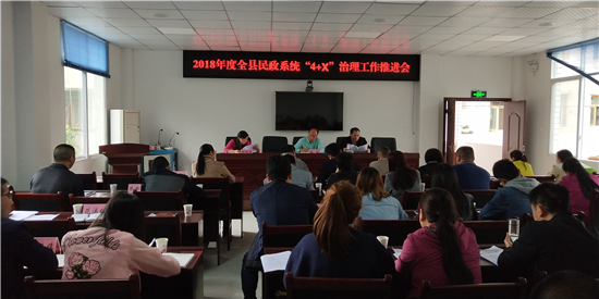 会议传达了市、县“4+X”系统治理工作文件、会议精神,详细讲解民政系统“4+X”系统治理工作方案,安排部署了深入推进全县民政系统“4+X”系统治理工作。