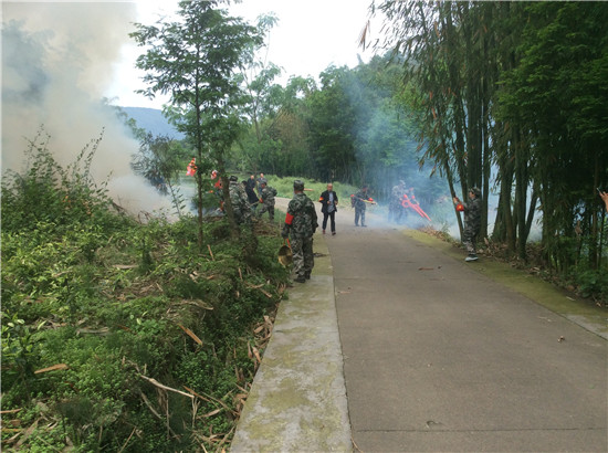 按照应急演练方案要求,演练分两个步骤进行:一是由镇林业站林业员在现场讲解打火帚、油锯、灭火器的正确使用方法;二是依次开展森林防火、地质灾害应急演练。在森林防火应急救援演练中,全体救援人员在镇总指挥长的统一指挥下,紧急集合完毕后,立即按照各自的分工要求实施灭火救人,及时将大火扑灭救出被困人员;在地质灾害应急演练中,接到地质灾害监测员灾情报警后,民兵们立即按照花溪镇应急救援方案,第一时间对伤员进行转移救治,并继续在灾害地点搜寻和监控,确保群众的生命财产安全。