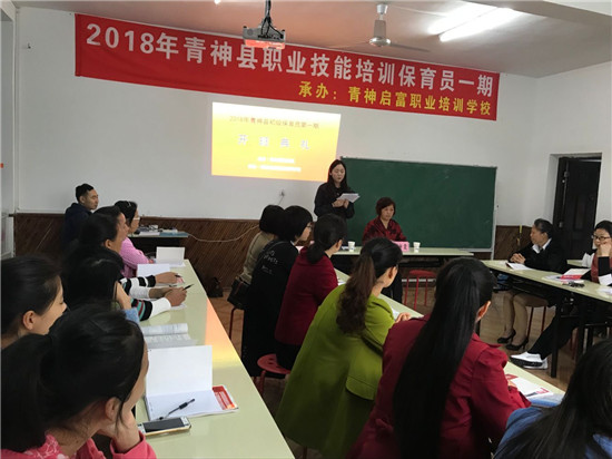 四川新闻网眉山4月27日讯(韩斌 图/文)“请问你们什么时候有保育员的培训呀?我们幼儿园现在特别缺人手!”针对青神县内幼儿园、早教机构缺乏专业保育员这一问题,4月25日,青神县就业局与启富培训学校联合举办的“2018年青神县职业技能培训保育员第一期”终于开班了。