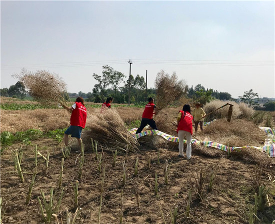 四川新闻网眉山5月3日讯(周霞 文/图)“每年到打菜籽的时候,我就愁的不行,家里没有劳动力,每年菜籽打都打不完,今年有你们过来帮我,我就不用愁了,真的是太感谢你们这些年轻人了……”青神县黑龙镇曹庙村特困户李玉兰一面打菜籽,一面不停的向黑龙镇党员干部表示感谢。