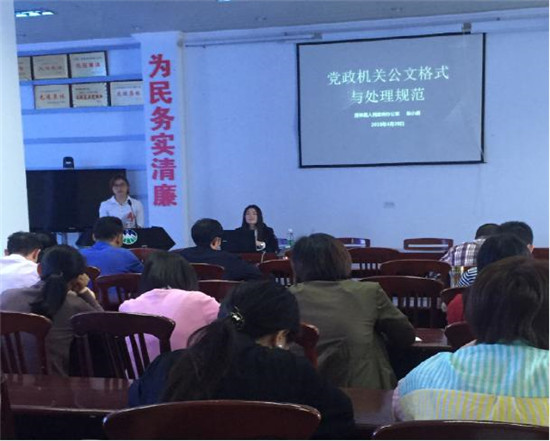 四川新闻网眉山5月4日讯 为进一步规范青神县国土局公文办理水平,提升干部职工公文写作和公文处理能力,4月28日,青神县国土资源局组织全局干部职工开展了党政机关公文格式与处理规范培训。