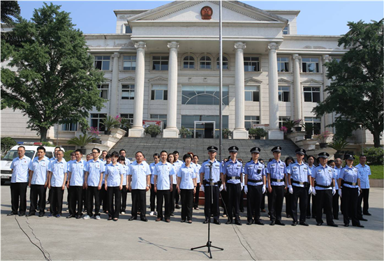四川新闻网眉山5月14日讯(王皓丁 文/图)今(14)日上午,按照眉山市中院的统一部署,全市各级法院干警通过视频会议直播系统、车载单兵执法系统拉开了“曙光行动—决胜2018”执行大会战的序幕。青神法院全院干警50余人参加了集中攻坚统一行动启动仪式。