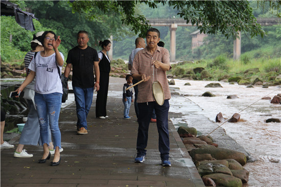 四川新闻网眉山5月18日讯(王婧思 图/文)为进一步增强社区居民的防洪意识,掌握洪水来临后的逃生、组织方法,5月17日下午3点,洪雅县柳江镇玉屏社区组织社区干部开展防汛演练。本次模拟洪水来后,社区干部敲锣方式沿线提醒群众,带领群众往至高点逃生。