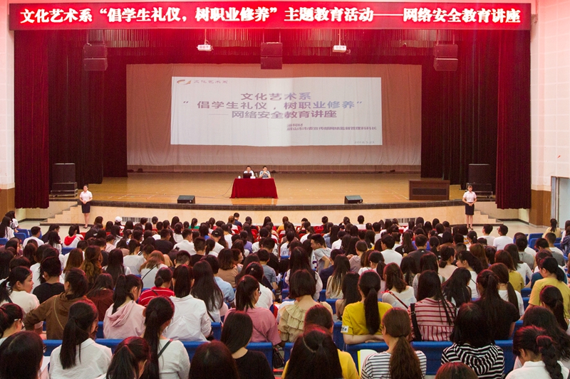四川新闻网眉山5月24日讯 5月23日晚,“文明上网、争做文明学生”为主题的网络安全知识专题讲座在眉山职业技术学院举行,为该校文化艺术系700余名大学生送去了安全上网、文明上网相关知识。