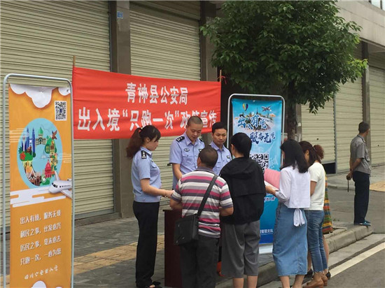四川新闻网眉山5月25日讯(陈霞 图/文)为进一步推动落实“只跑一次”制度,让更多群众了解、分享“只跑一次”新政红利,扩大便利措施的社会影响力,特别是省厅六项出入境便利措施的逐步落地,促进了申请因私出国(境)证件人数较往年明显增多。青神县公安局出入境窗口民警积极响应上级业务部门号召,于5月23日上午开展了一次“只跑一次”主题宣传活动。