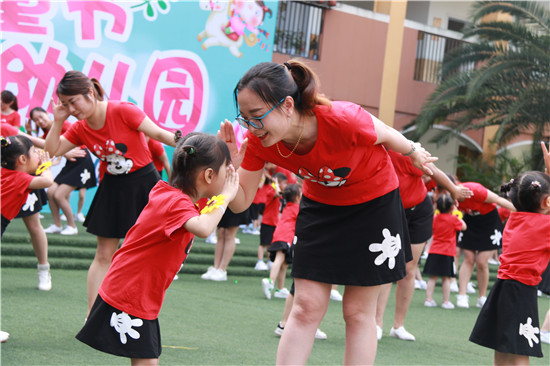 活动在园歌《天使之爱》优美的旋律中拉开序幕,教师风采秀、园长致辞、亲子操表演、亲子歌舞展示等,一幕幕将整个活动推上了高潮,让家长和孩子在亲子互动中体验快乐、重拾童年记忆。亲子舞蹈表演中,活泼的蓝精灵、强壮的大力水手、机智的汪汪队、可爱的樱桃小丸子、动感的超级玛丽......在老师们的精心设计、家长们的积极合作、孩子们的热情参与中,一起重温经典动画带来的惊喜和感动。
