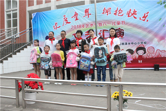 四川新闻网眉山6月1日讯(罗惠敏 文/图) “六一”儿童节之际,洪雅县林业局干部职工深入桃源小学与小朋友们共度节日,送去糖果、书包、文具等价值2000元的节日礼物。
