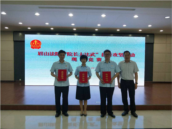 四川新闻网眉山6月6日讯(王皓丁 文/图)近日,为对全市法院“基本解决执行难”工作成效全面“阅兵”,强化“一把手”工程。眉山全市基层法院“院长大比武”执行攻坚竞赛活动在眉山中院举行,六区县法院院长轮番“打擂”:拼综合实力、看现场过招、展亮点风采。