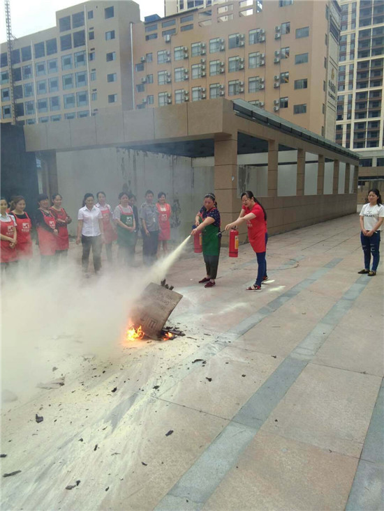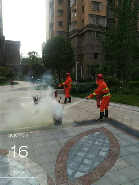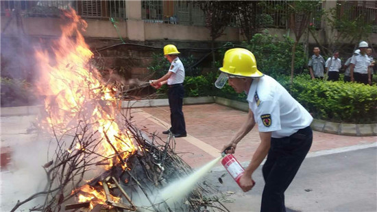 在培训期间,宣传员结合住宅小区布局多元化、复杂化的特点,采用通俗易懂的语言着重讲解了防火基础知识、日常安全用火用电小常识、扑救初期火灾的措施及火场自救逃生的方法。同时对小区的消防车通道问题,消防设施检查和使用,安全出口、疏散通道的安全问题,消防控制室值班人员、从业人员岗前消防培训,防火巡查记录表的填写和物业人员基本的消防安全常识等方面进行了详细讲解及全面培训,叮嘱物业公司负责人要加大自检自查力度,及时消除火灾隐患,并号召广大居民共同参与消防、关注消防。随后,大队宣传员细致地讲解了灭火器的正确使用方法并进行现场示范,手把手教授灭火器的使用要领,切实提高了参训人员的防火灭火能力。