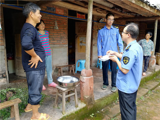 四川新闻网眉山6月13日讯(刘俊 文/图) 6月12日,青神县食品药品监管局党员先锋队深入罗湾村开展直联活动。