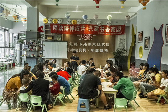 活动现场为各家庭分别发放绘本,指导他们进行亲子阅读,现场实战,并采取击鼓传花的形式进行即兴朗读、表演,家长和孩子投入其中,彼此建立更好的衔接。亲子之间丰富的语言交流,是一个家庭最大的财富。“今天参加阅读活动,我知道了要培养幼儿的语言能力,最重要的就是让他在成长的过程中听到丰富的词汇,我会坚持做好亲子阅读。”一家长分享。