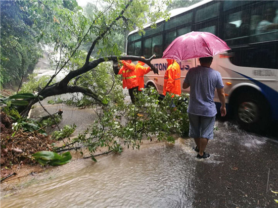 汛情发生后,县交通运输局立即启动防汛应急预案,出动装载机2台,车辆15辆,抢险人员约100余人次。交通养护、路政人员连夜冒雨清理受阻道路,抢修受损路面、路基等,截止目前,已处理垮方16余处,清理倒伏竹木40余处,清理零星塌方落石30余处。另外,由于降雨量大,路面积水过深,部分道路和桥梁存在一定程度通行安全风险。为此,县运管所及时采取措施,要求客运企业在降雨期间对山区道路部分客运班线进行强制停运避险。