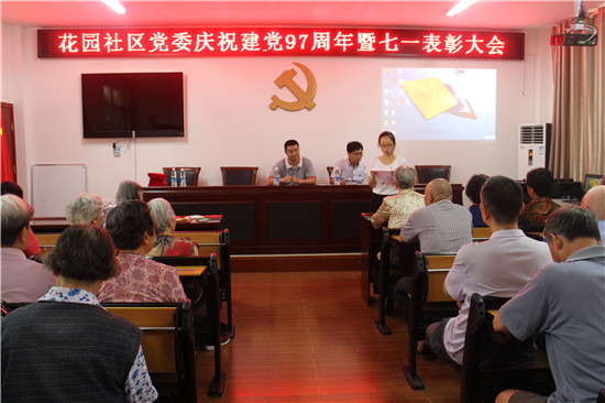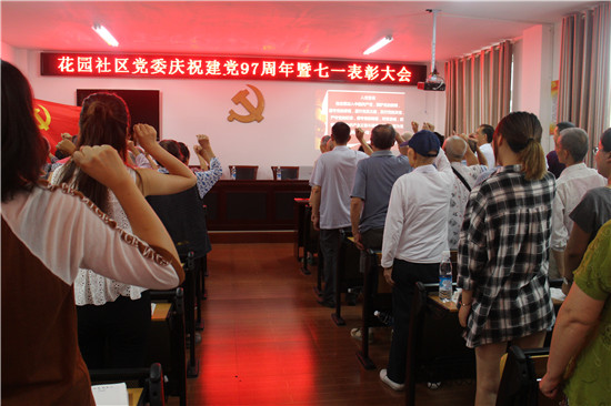 四川新闻网眉山6月27日讯 6月27日上午,青神县花园社区党委召开庆祝建党97周年暨庆“七一”表彰大会,花园社区80余名党员同志齐聚一堂共同庆祝党的生日97华诞。会议共分三个议程:重温入党誓词、表彰2017年度优秀共产党员、社区党委书记上党课。
