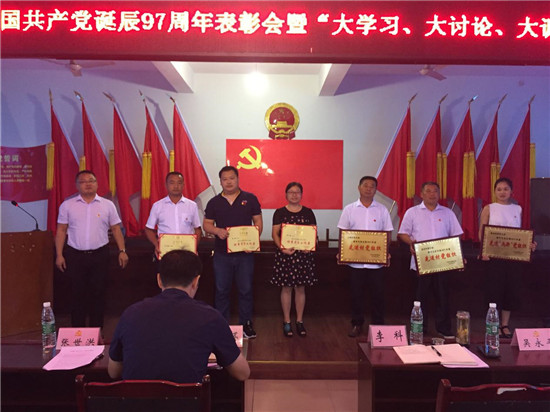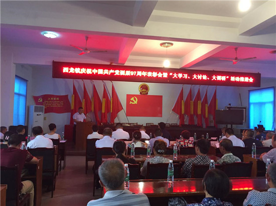 大会在庄严的国歌中拉开帷幕,会上预备党员入党宣誓,全体党员重温了入党誓词,镇党委副书记宣读了《中共西龙镇委员会关于庆祝中国共产党诞辰97周年表彰先进集体和优秀个人的通报》,镇党委书记为他们颁发了奖牌和荣誉证书,号召全镇党员干部向他们学习,同时要求全镇各党支部和党员干部充分发挥党员的先锋模范作用和基层党组织的战斗堡垒作用,以对党对人民高度负责的态度,以敢于担当、主动作为的工作作风,努力构建服务型党组织,为实施“五大”乡村振兴战略,为全镇经济社会发展注入强大的“红色动力”。